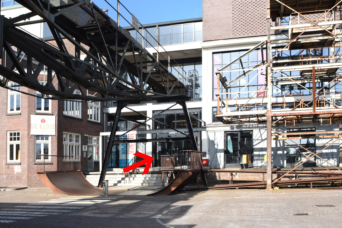 De Toren bij de ingang van Phoenix is de locatie waar het zich afspeeltWe zien een leeg terrein, tegen het gebouw staat de slagwerkgroep olv…..? opgesteld.