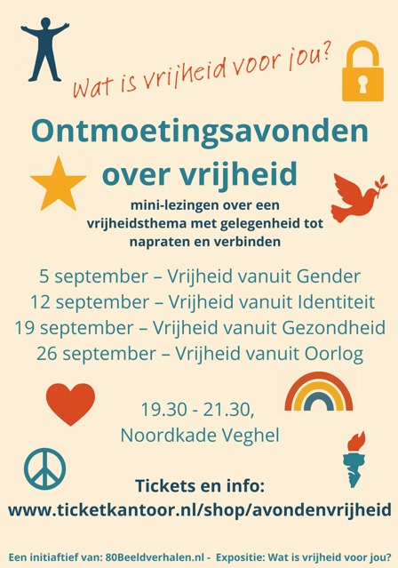 Tijdens het project bleek dat de beelden veel losmaakten, maar dat deelnemers en bezoekers ook behoefte hadden aan verdieping en gesprek. Hieruit ontstond een reeks Ontmoetingsavonden, waarin vrijheid werd besproken vanuit verschillende invalshoeken: gender, identiteit, gezondheid en oorlog.